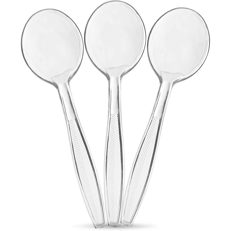 Plasticpro Clear Plastic Soup Spoons Disposable Cutlery Medium Weight Utensils 50 Count