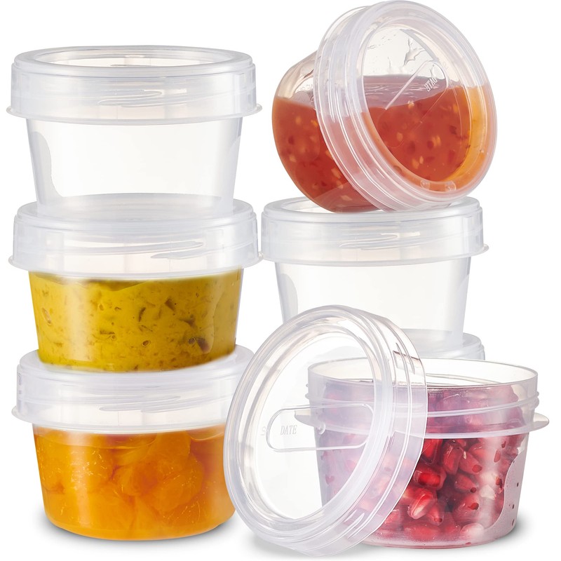 PLASTICPRO - Paquete de 6 recipientes de almacenamiento de alimentos con tapa transparente atornillada, contenedores reutilizables de 4 onzas, recipientes pequeños para congelador, seguros para