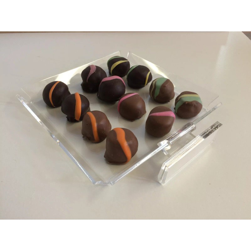 Plastics Unlimited Chocolate candy acrylic showcase display case tray for retail stores 6" x 6"