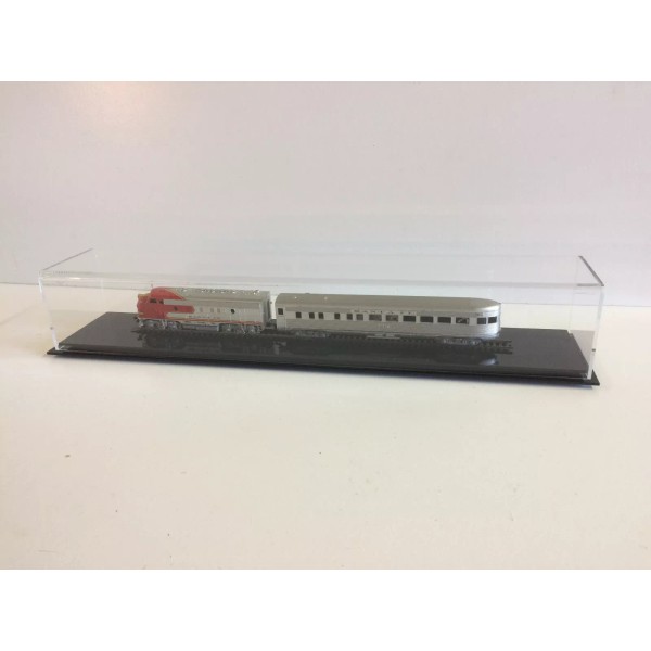 Plastics Unlimited Train Display case HO scale 16" long with low profile black acrylic base