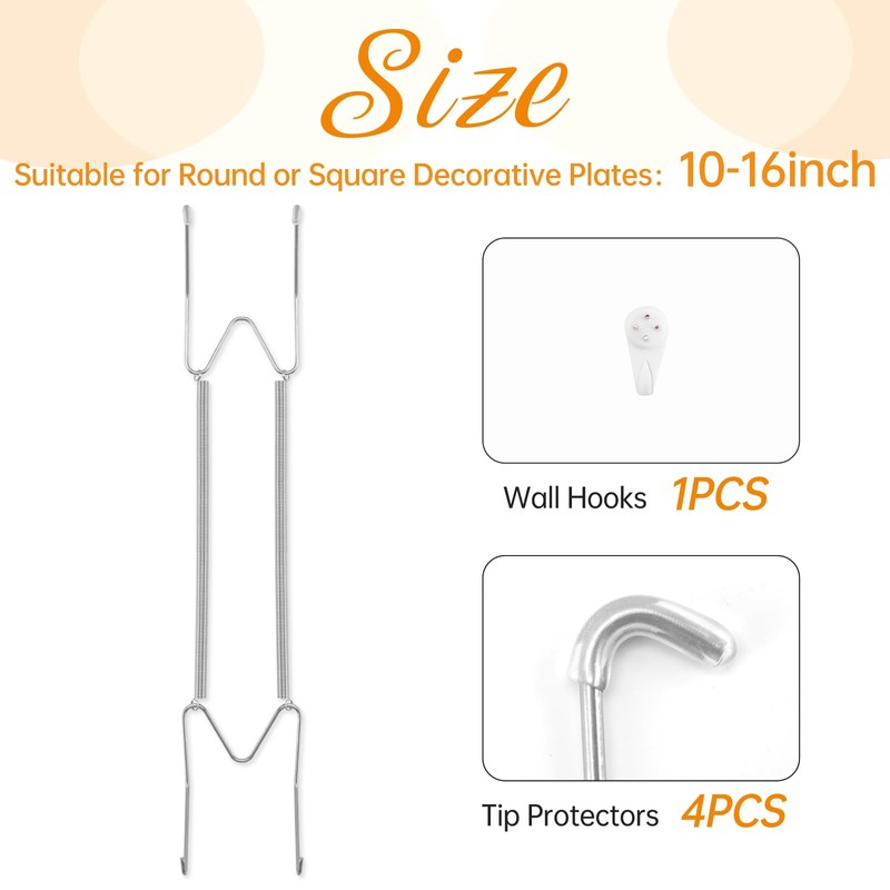 - Premium Material: Our wall plate hangers are made of stainless steel with golden plated on the surface, not easy to break or rust. The rubber tip protector protects your plate from scratches. The adjustable spring design holds the plate tightly