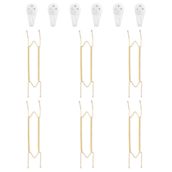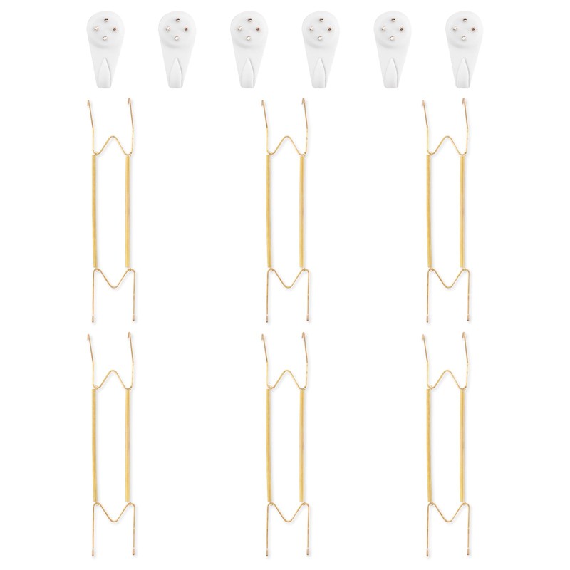 6 Pack Plate Hangers for The Wall, Suitable for 16-20 inch Art Plate, Stainless Steel Invisible Heavy Duty Wire Plate Holder with Wall Hooks, Plate Hangers for Displaying Plates, Platter, Dish, Gold