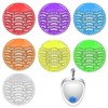 - Pack: contains 7 urinal sieves. Each strainer is individually packaged for time offset consumption. Once a sieve is removed from its packaging, the fragrance starts release by evaporating the natural essential oils.