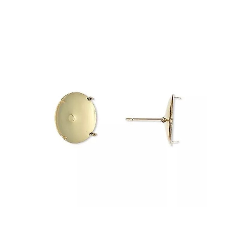 - Earstud, gold-plated steel and stainless steel, 14mm round flat pad with 13mm 4-prong round setting.