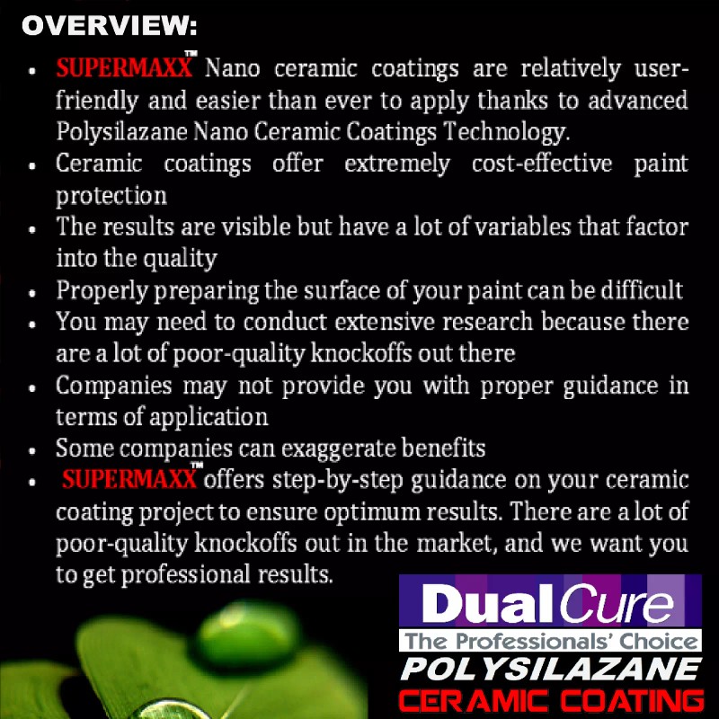 - 2. SUPERMAXX is a proprietary Polysilazane formula that protects your car's paint surfaces and helps maintain a new car look.