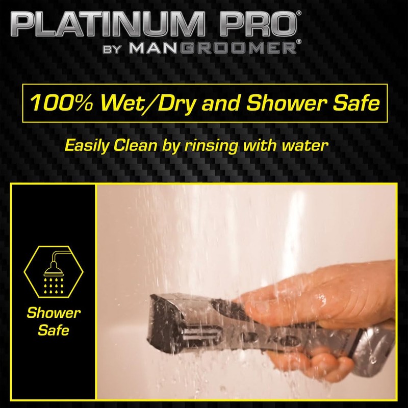 - The New PLATINUM PRO by MANGROOMER Body Groomer, Ball Groomer and Body Trimmer is our most Advanced Body Groomer and Body Trimmer ever built with over 18 years of research and development. Plus, we included a Bonus Storage Case and an extra Foil Blade for you!