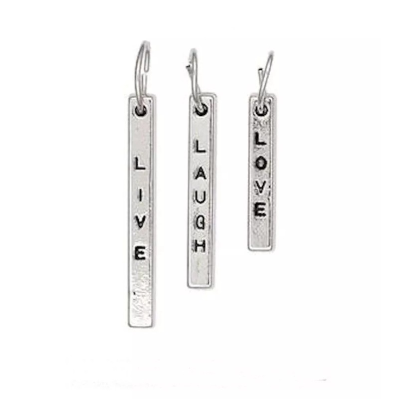 Platinum Stick Charm, LIVE LOVE LAUGH 3 Antiqued Silver Plated Brass with Jump Rings *