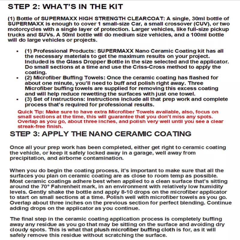 - 1- 1.7oz/50ml Bottle of SUPERMAXX Hybrid Coating