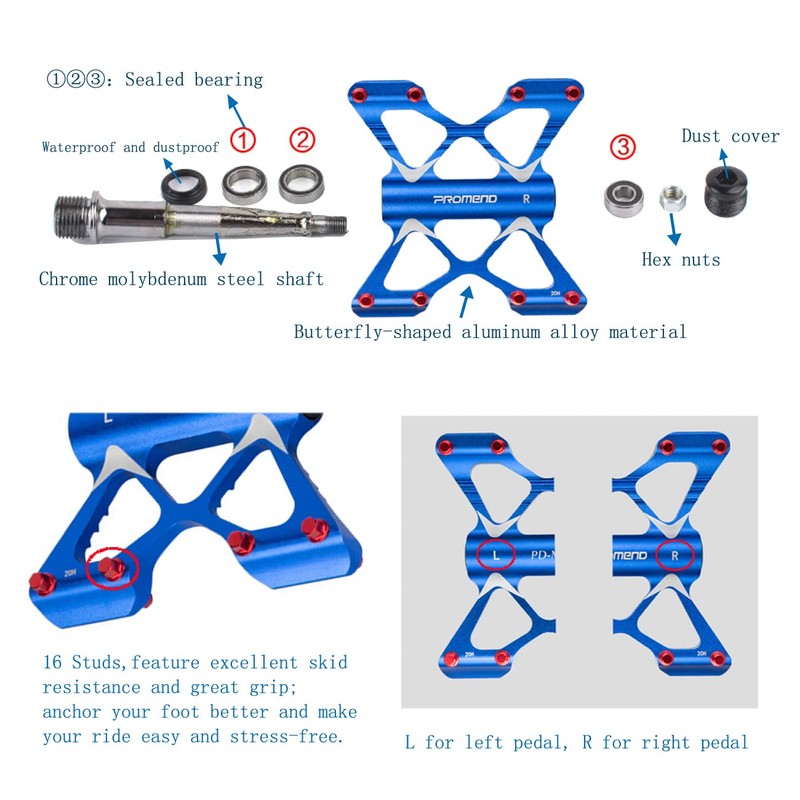 - [Universal pedal thread] - standard 9/16 inch spindle is suitable for mountain bike, road bike, trekking bike, tandem, railway bike, city bike, cross bike, dirt bike, etc. Installation is super easy with the link and right marking. L for left pedal, R for right pedal.