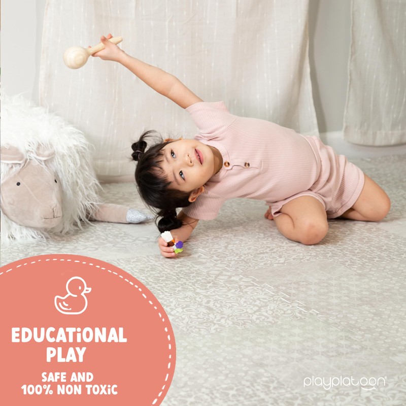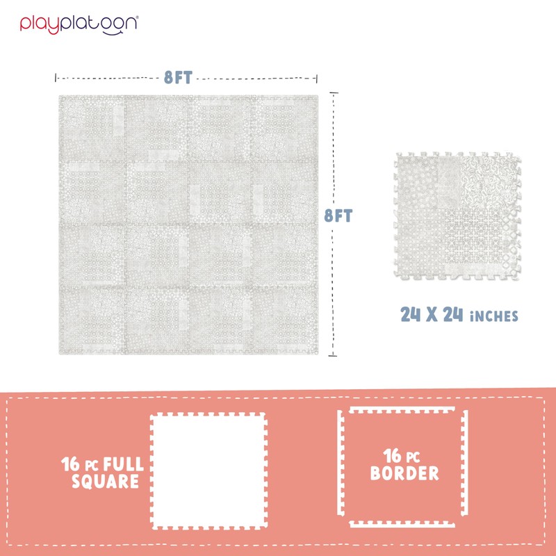 - STYLISH DESIGN - This neutral patterned gray square baby playmat tiles provides a safe and inviting surface for your little one while enhancing the look of your playroom, exercise room, daycare or school.