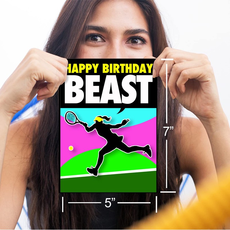 Play Strong Girls Tennis Beast Birthday Card 1-Pack (5x7) Tennis Sports Birthday Cards Greeting Cards - Awesome for Tennis Players, Coaches and Fans Birthdays, Gifts and Parties!