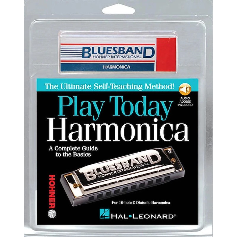 This beginning kit contains everything you need to get started playing one of the most portable instruments - the harmonica! A high-quality Hohner Bluesband harmonica is included, along with the Play Harmonica Today! method book/CD pack. The professional-quality CD features 57 full-demo tracks to help you listen and learn. A bonus cloth travel pouch for your harmonica is also included!