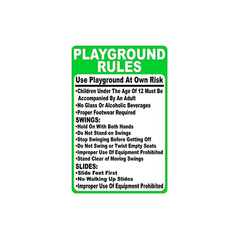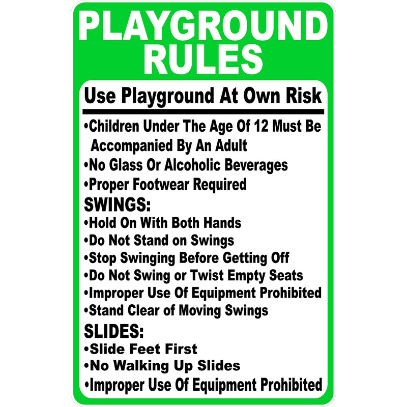 Playground Rules Use Playground At Your Own Risk With Rules Sign. 18x24 Metal.