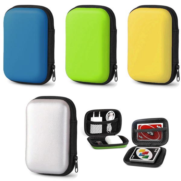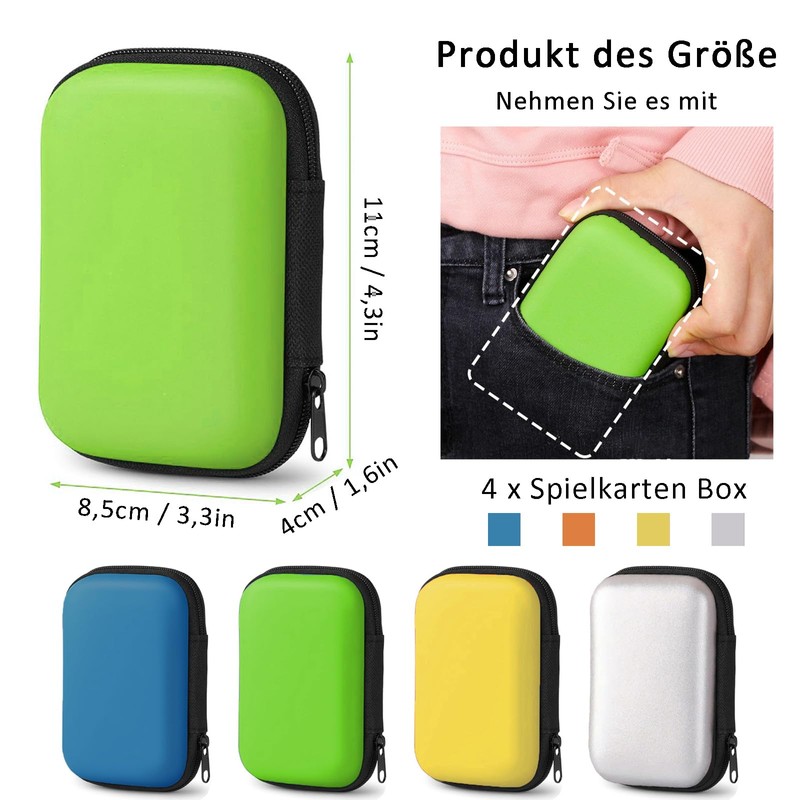 Playing Card Box, Pack of 4 Playing Card Case, Carry Bag for Travel, Card Game Box, Bluetooth Headphones Bag, Case Playing Card Storage, for Cards, Card Games (Yellow, Green, Silver, Dark Blue)
