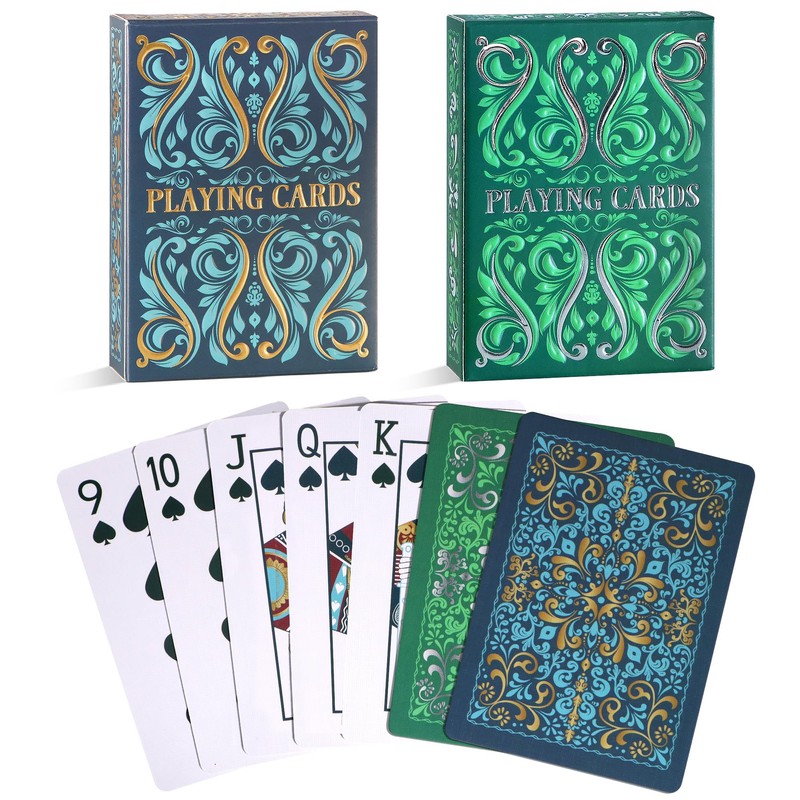- Playing Cards 2 Pack: This set includes two stylish decks (blue and green) with unique pattern designs. The box is crafted with hot foil stamping for an exquisite finish. Perfect for multiplayer games or as a backup deck, it’s ideal for parties and family game nights
