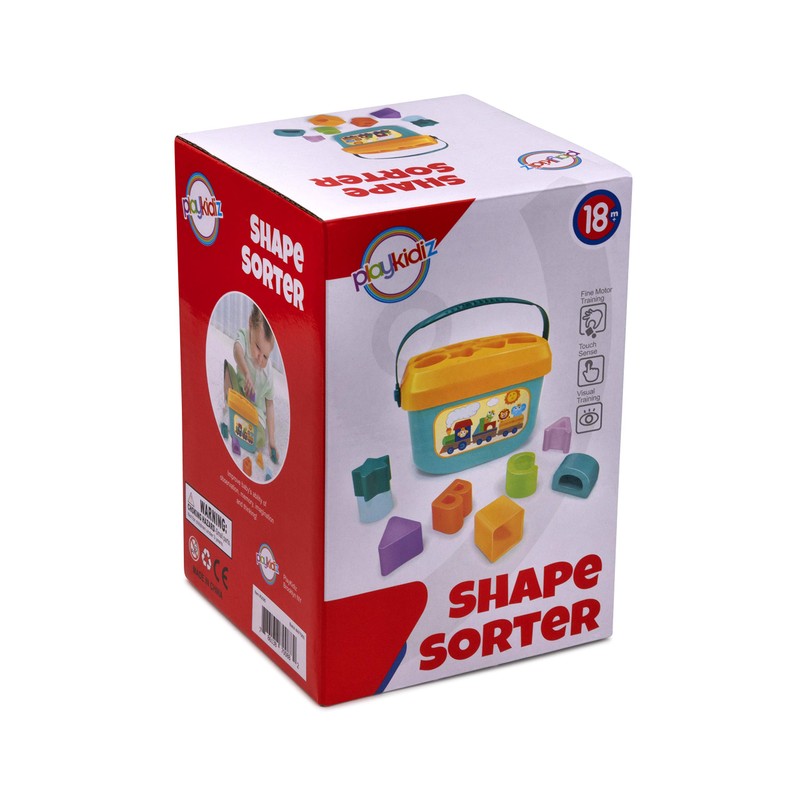 - SORTING GAME: The Playkidiz creative shape sorting toys is a beautifully constructed toy box with brightly colored ABC and Shape blocks.