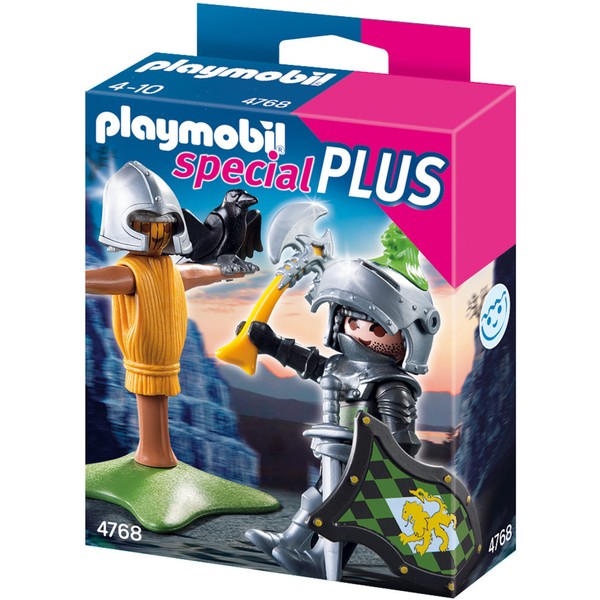 Practice sparring with the Lion Knight with Training Dummy. Set includes one figure, shield, training dummy, helmet, battle axe, bird, and other accessories. Play with this set alone or combine it with other PLAYMOBIL sets. Safety Information: Warning. Not suitable for Children under 3 years.