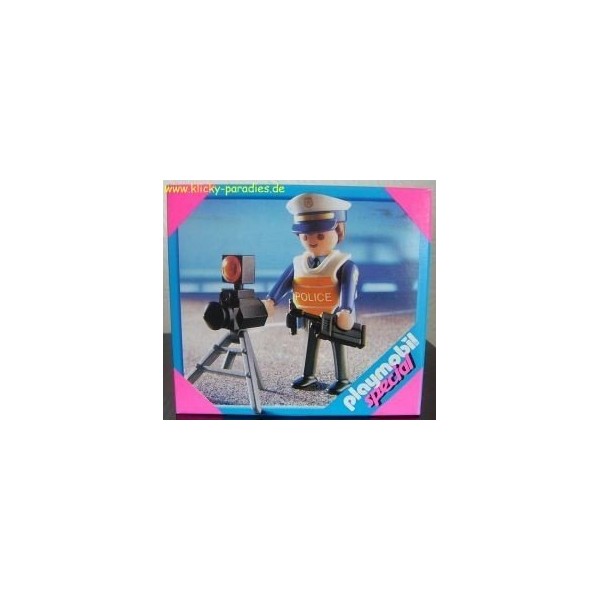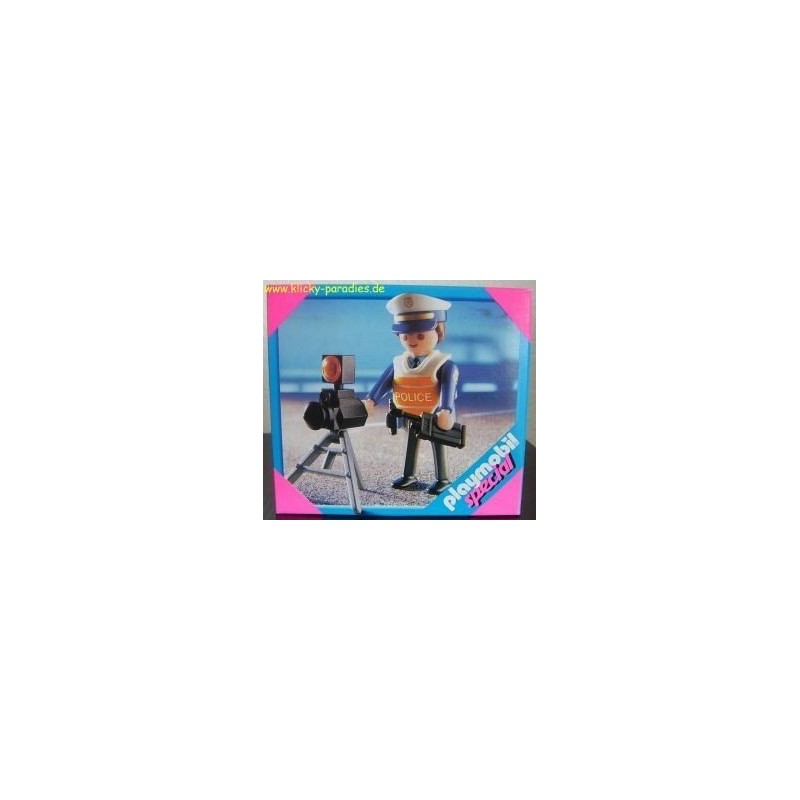 - There have been a lot of speeders in town recently and this patrolman has been called to get the speeds of these cars by radar. If he catches someone speeding he can radio into another patrolman to give them ticket. Ages 4 & Up 4900 Playmobil