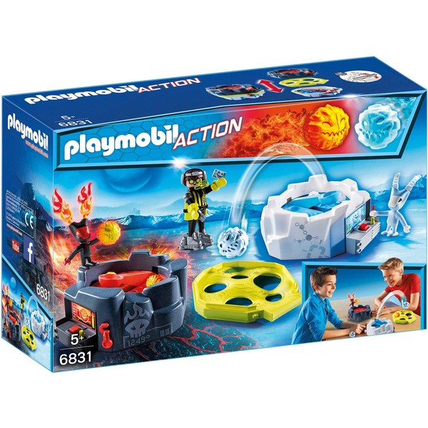 - The PLAYMOBIL Fire and Ice Action Game is the ultimate game of accuracy and skill. Use the mechanic catapults to propel fire and ice projectiles on the target platform to try and score the maximum amount of points. The three platforms push together so the set can be transported. Aim, Shoot, Win!