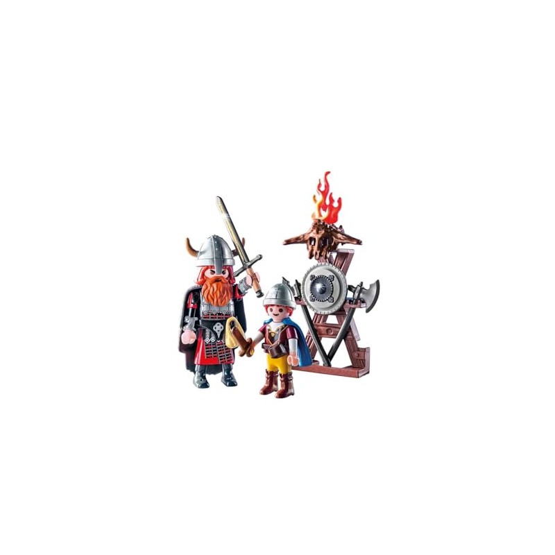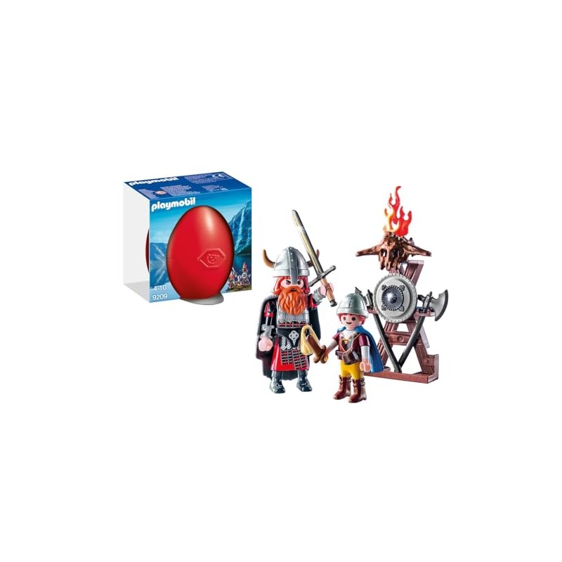 - The PLAYMOBIL Vikings with Shield Gift Egg includes a Viking king with his apprentice practicing their sword skills. They have a wide selection of weapons to use including axes and shields. The set comes packaged in a red egg that is great for keeping all the parts together and can also be used as a money box.
