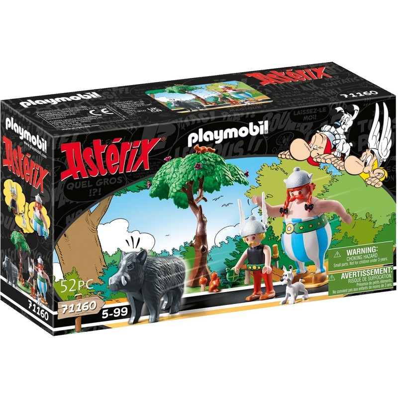 - Box contents: 1 x Playmobil Asterix: Boar hunting 52 piece toy figure set with instructions: 1 tree, 1 Asterix figure, 1 Obelix figure, 1 Idefix figure, 1 wild boar, 48 accessories, material: Plastic, L x D x H base plate (standing tree): 11.5 x 8 x 18 cm, base plate (tree folded): 23.5 x 21.5 x 11.5 cm. Weight: 113 g, 71160.