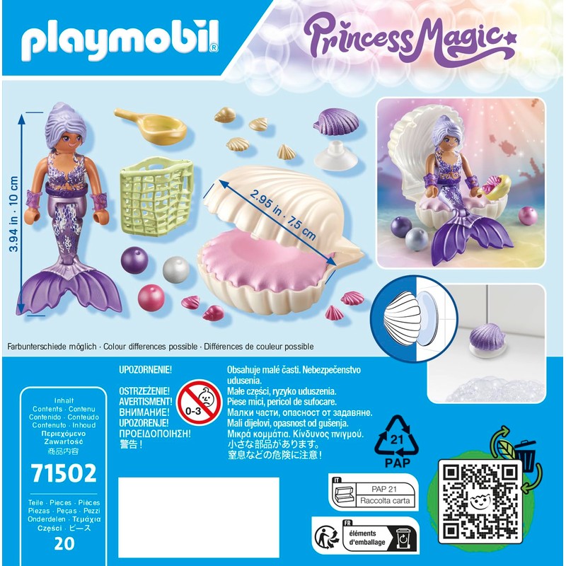 - Mysterious Accessories: Discover with the mermaid her clamshell treasure chest, pearl holder, and many other glittering extras as she roams through the enchanting underwater world and experiences exciting adventures