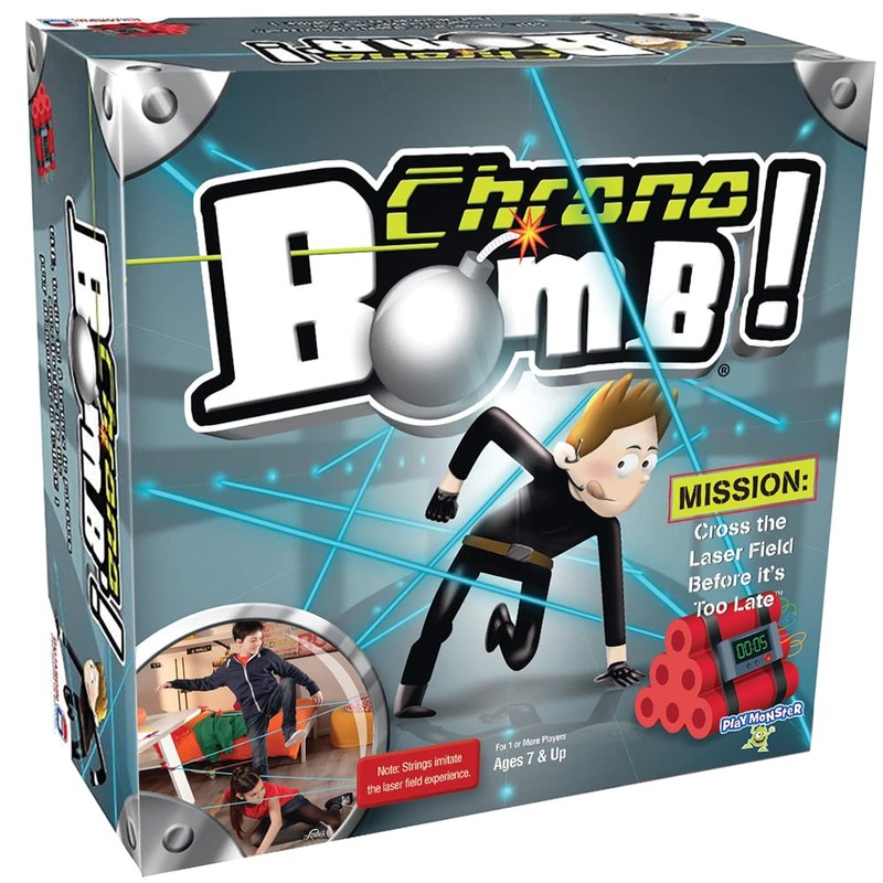 Chrono Bomb is a super secret spy mission where kids use the included clamps and 27.5-ft. string to create a "laser" field to crawl through. At the end of the maze is the bomb, counting down. Tick, tick, tick! So, you have to hurry, carefully, and make it to the end to defuse the bomb and be the hero! Play over and over again, building new courses each time or trying to beat your or your friend's time! Includes free app for more play value! Requires three AAA batteries, not included. For ages 7 and up.