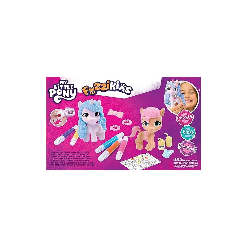 - Create, Rinse & Re-colour with endless new designs with Sunny Starscout and Izzy Moonbow!