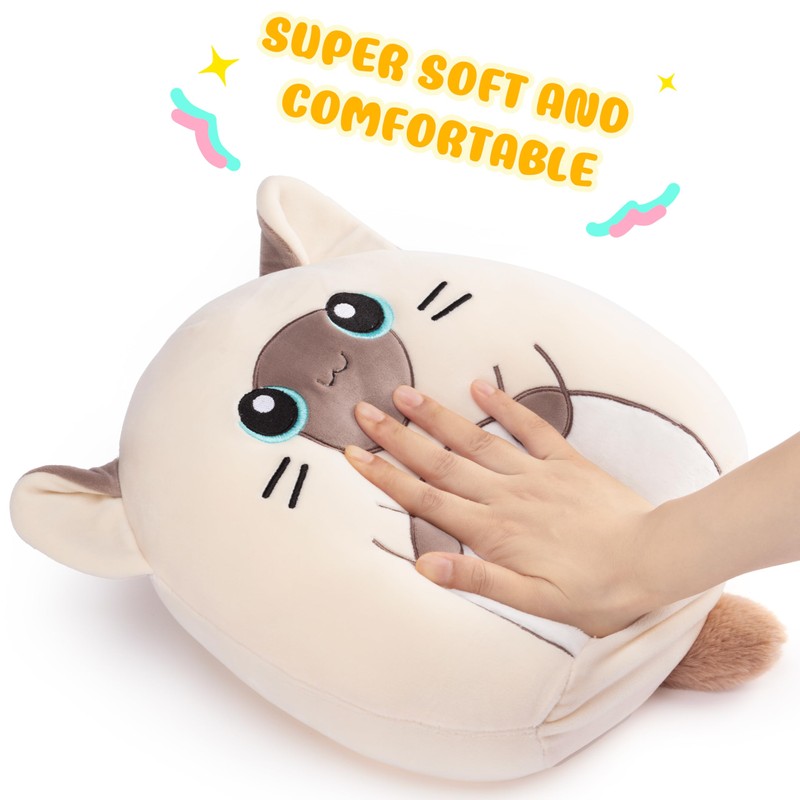 - Large Size & Cozy Comfort: Our cat soft plushies squishy pillows are 12" in size, making them the good companion for kids and adults alike. Made with a warm and soft short fabric, they provide a cozy hug for a comfortable nap or a relaxing evening