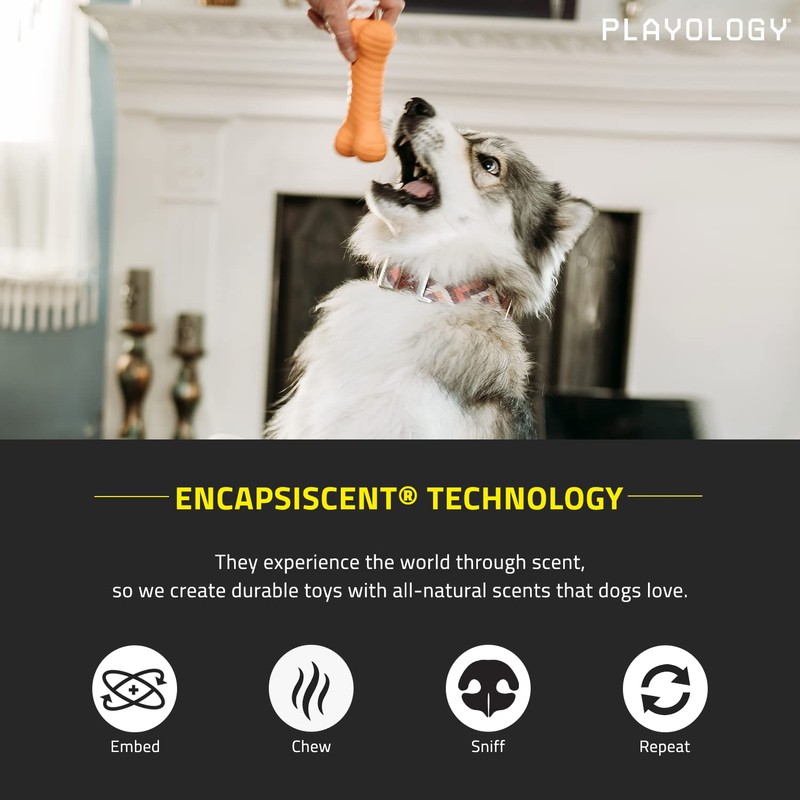 - ENCAPSISCENT TECHNOLOGY: A dog’s sense of smell is 10,000x more powerful than a human’s. Dogs experience the world through scent, so we make interactive dog toys with the all-natural scents they love. Every Playology dog toy is embedded with an all-natural scent at the microscopic level. The fresh bursts of scent that are released with each chew will keep your pup engaged 7x longer than unscented toys.