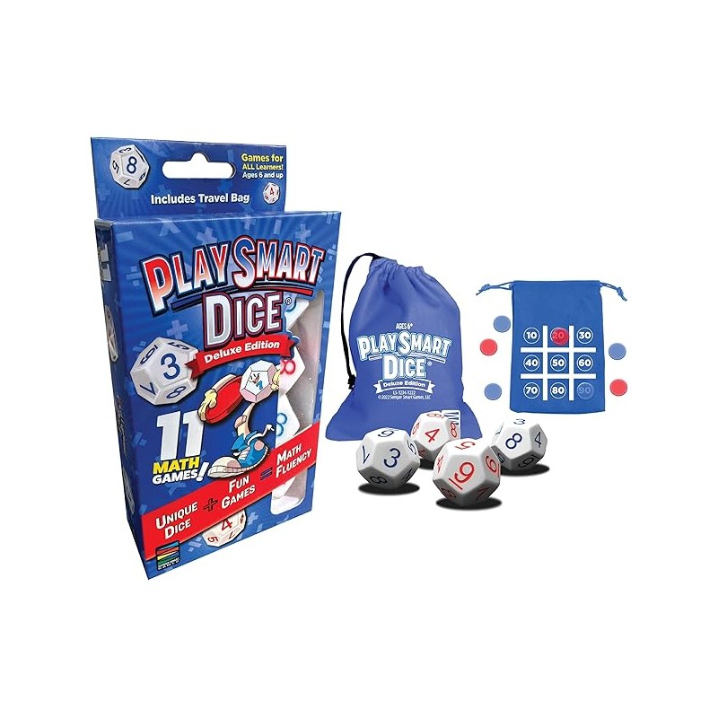 PlaySmart Dice Deluxe: Sharpen Math Skills at Home and On The Go with Uniquely Numbered Math Dice and 11 Fun Math Games That Help Kids Master Mental Math. Perfect Travel Game!