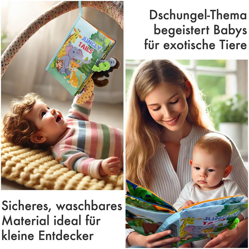 On a tour of discovery in the jungle: with this colourful fabric book, your baby will explore the fascinating world of the jungle. Vibrant colours and exciting 3D elements make each page a new experience.