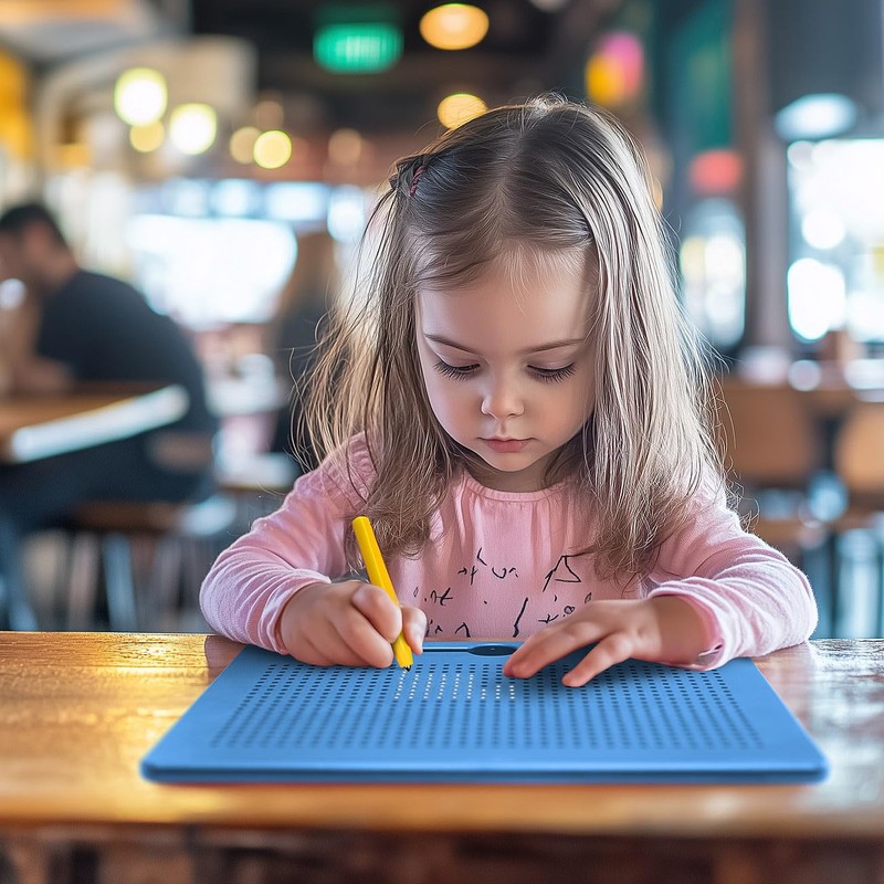 Kreativer Malspaß für unterwegs : Diese handliche Magnet-Zeichentafel bietet Kindern grenzenlose Möglichkeiten zum Zeichnen, Schreiben und Kritzeln - ganz ohne Papier und Stifte. Ideal für unterwegs, im Auto, im Restaurant oder als kreative Beschäftigung zu Hause. Die kompakte Größe macht sie zum idealen Begleiter für kleine Künstler. Kinder können Buchstaben, Zahlen oder Formen üben und sich immer wieder neue Motive ausdenken - eine tolle Möglichkeit, ihre Fantasie anzuregen.