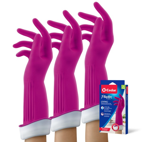 Playtex Living Reuseable Rubber Cleaning Gloves, Premium Protection Reusable Household Gloves, Large (Pack of 3)