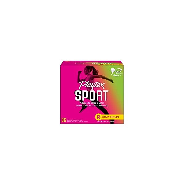 Playtex Sport has a 360° design to fit your body and its every move, and a protective leakage barrier so you can Play On. The FlexFit interlocking fibers work quickly to trap leaks. The Contoured Applicator is there for comfortable, precise placement. Playtex Sport comes with Leak Defense - an anti leak back up layer for extra protection. These are great tampons for swimming, biking, running or whatever your activity of choice is. The Playtex Sport Regular Absorbency is not too light or heavy. Perfect for normal flow days. Fragrance-free, 36 count per package.