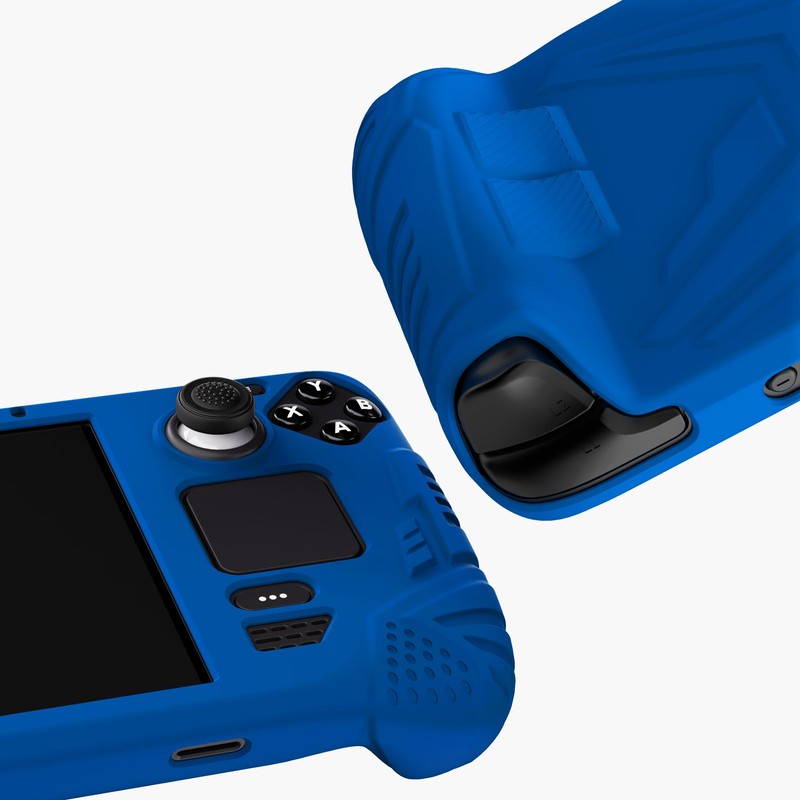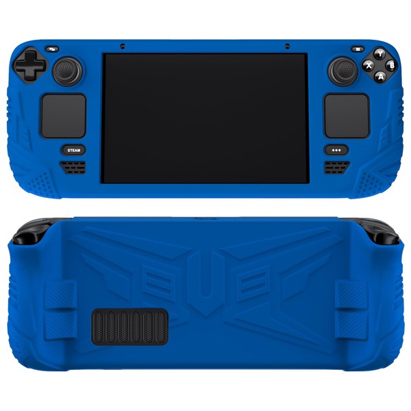 PlayVital Armor Series Ergonomic Case for Steam Deck LCD, Soft Cover Protective Silicone Protector with Back Button Enhancement Designed & Thumb Grips Caps for Steam Deck - Blue