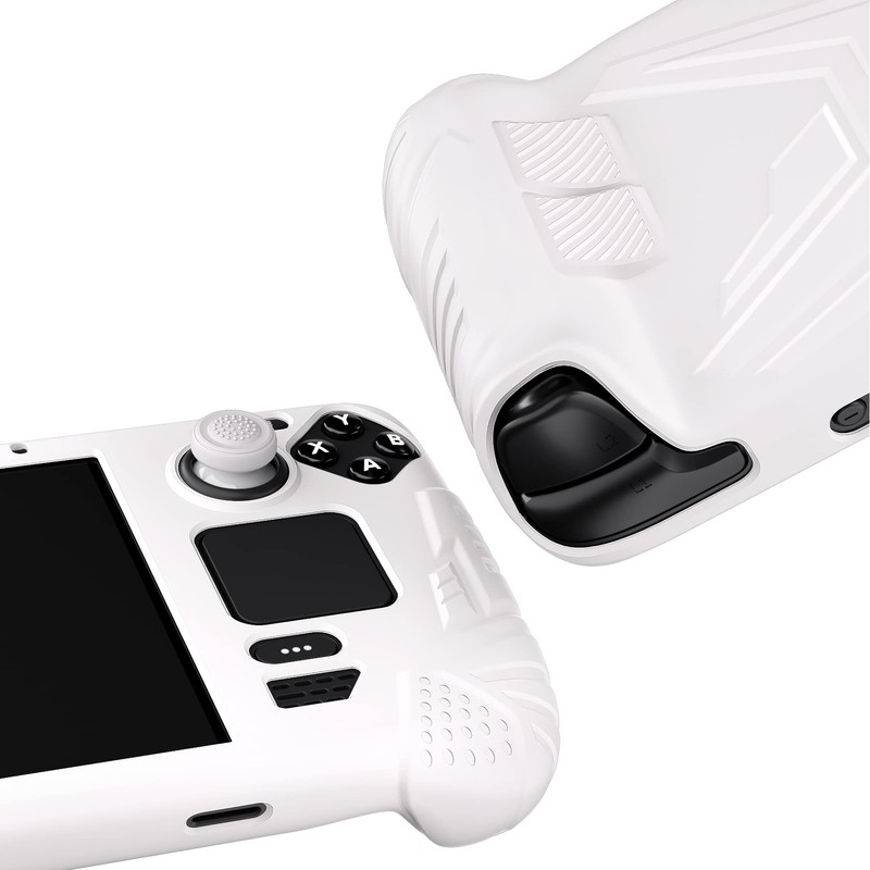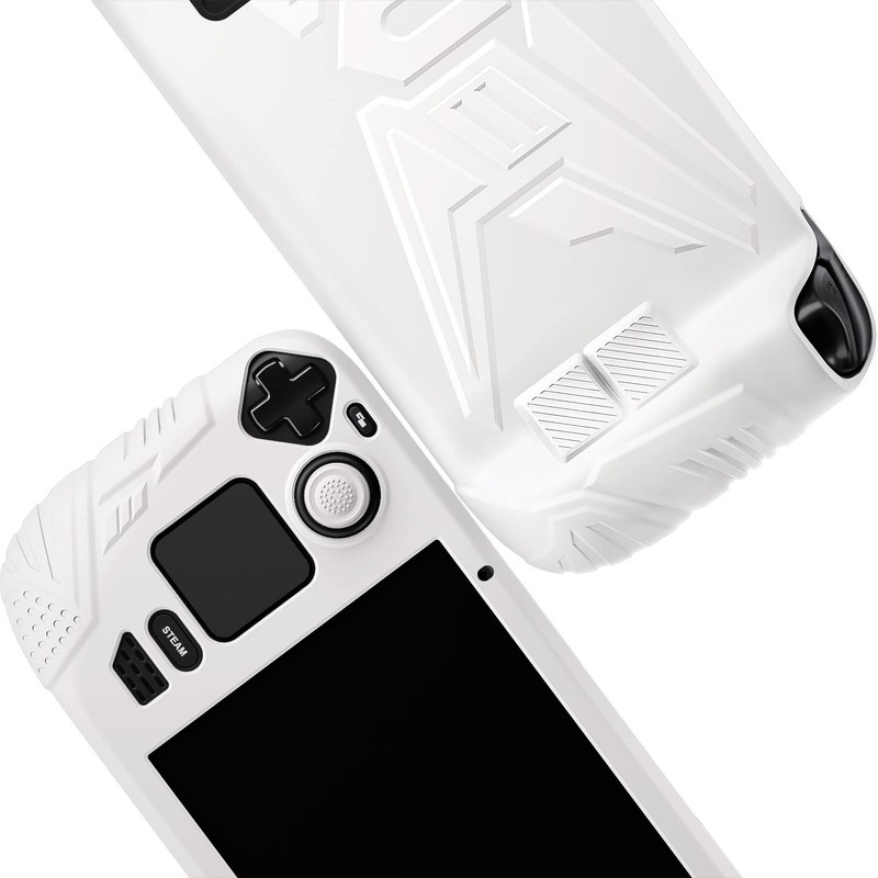 playvital Protective Case for Steam Deck LCD, Protective Case, Non-Slip Soft Rubber Case with Back Button/Stick Caps for Steam Deck (Armor Series Black) Armor Series White