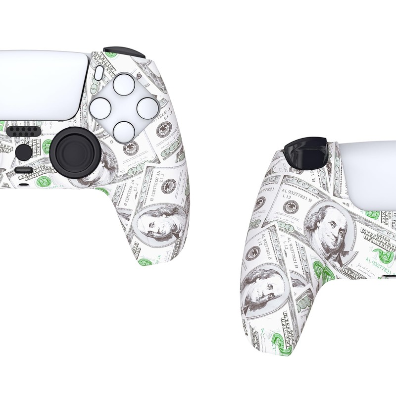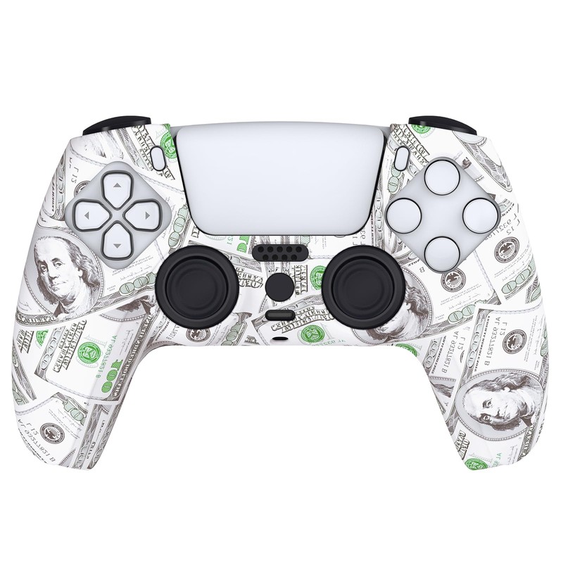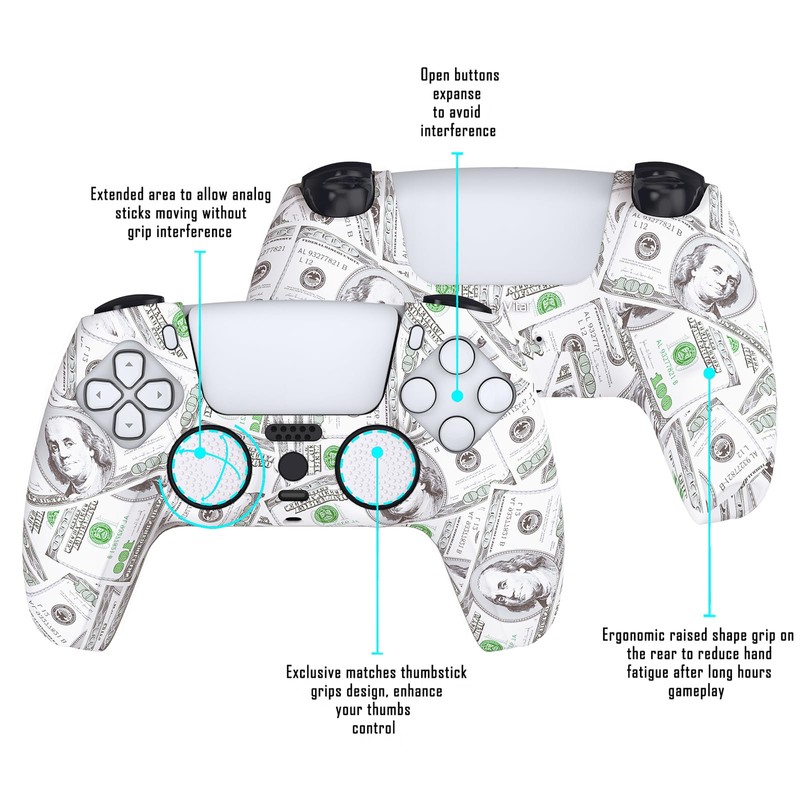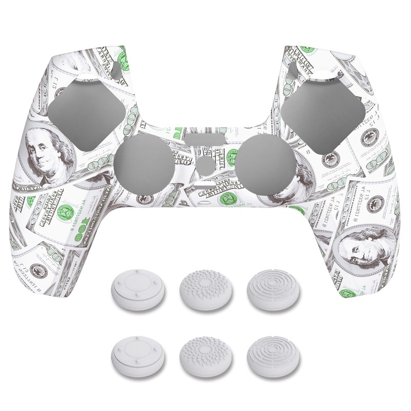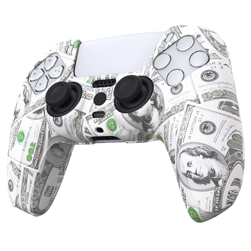 PlayVital Water Transfer Printing Patterned Anti-Slip Silicone Controller Skin for ps5 Controller Cover with 6 Thumb Grip Caps, Soft Rubber Case Protector for ps5 Controller - 100 Cash Money Dollar