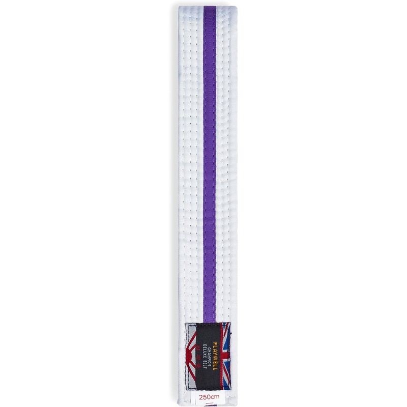 Playwell Martial Arts Cotton White Belt With Coloured Stripes Grading Belt - (Karate, Judo Taekwondo) (White Belt With Purple Stripe, 220cm)
