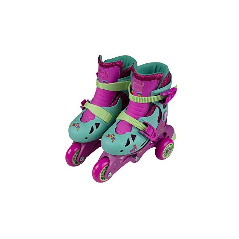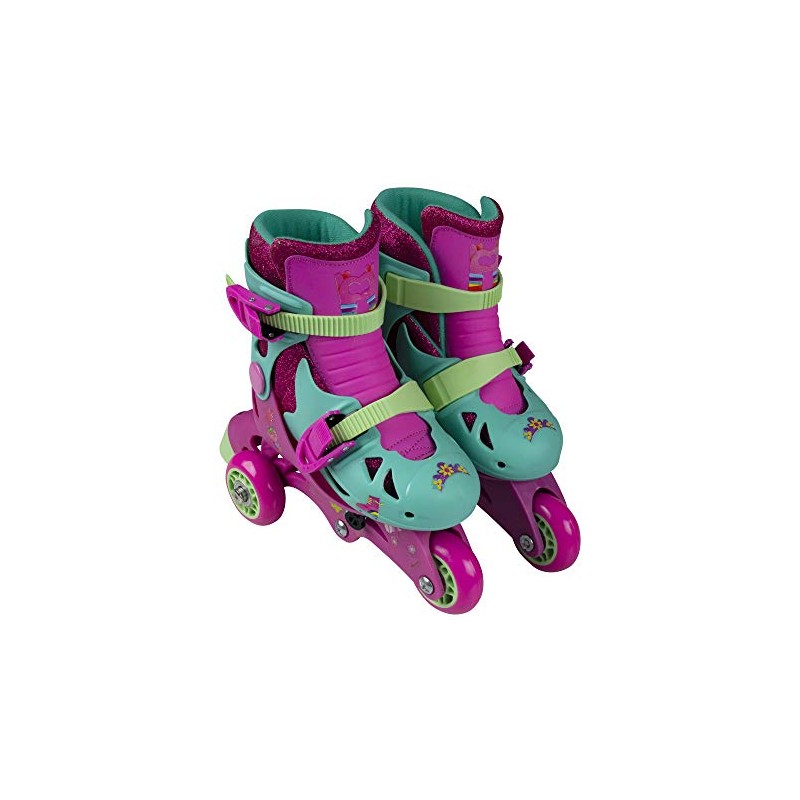 PlayWheels Trolls Glitter Convertible 2-in-1 Skates – Junior Size 6-9, Switch Between Tri-Wheel and Inline for Versatile Skating Fun, Adjustable Fit with Secure Straps and Comfortable Padding