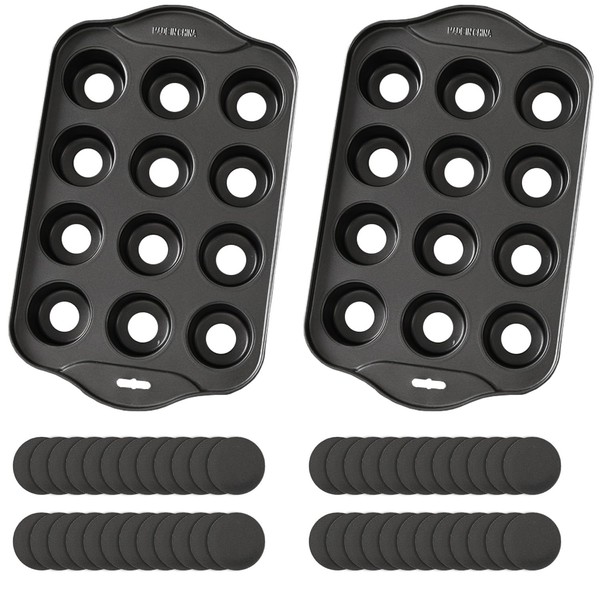PLAZOTTA 2 Pack 12 Cavity Mini Cheesecake Pan, Mini Muffin Baking Pan, Mini Cupcake Pan with Removable Bottom, Round