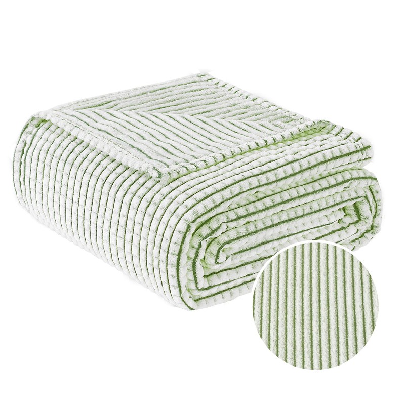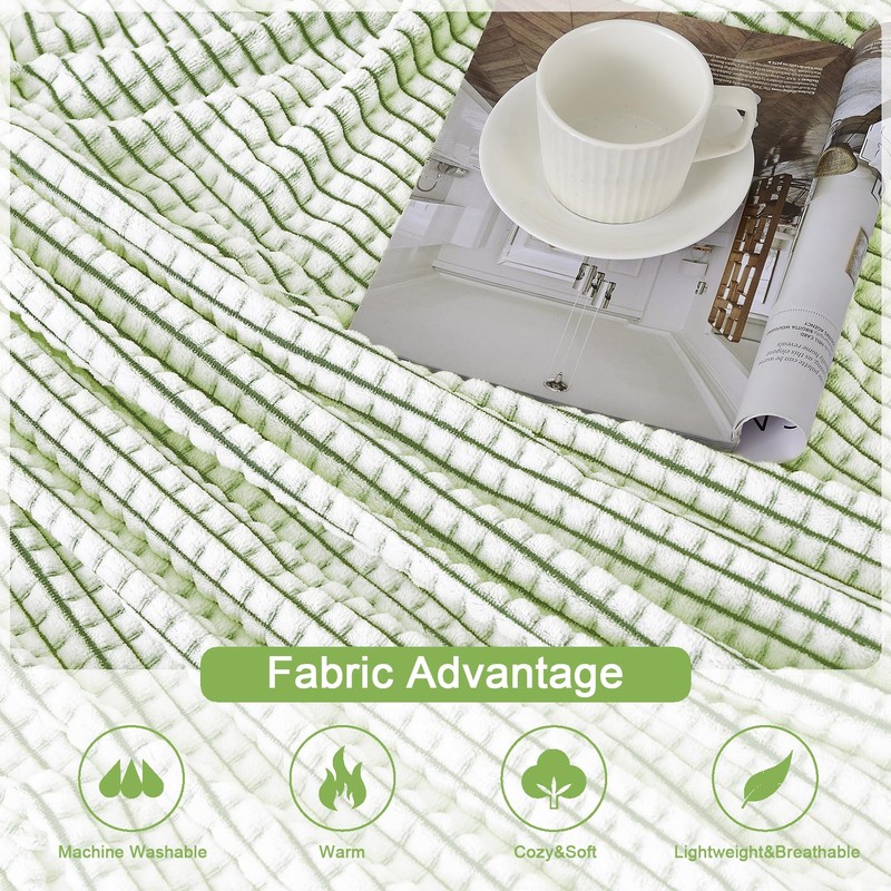 PLEASANT BOULEVARD | Fuzzy Throw Blanket Double-Sided Design Checkered Striped Waffe Lightweight Fleece Blankets for Bed and Couch Décor – Cozy, Soft, Cute for Women, Twin (60" x 80") Green