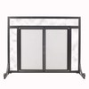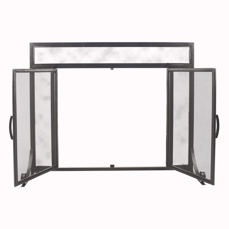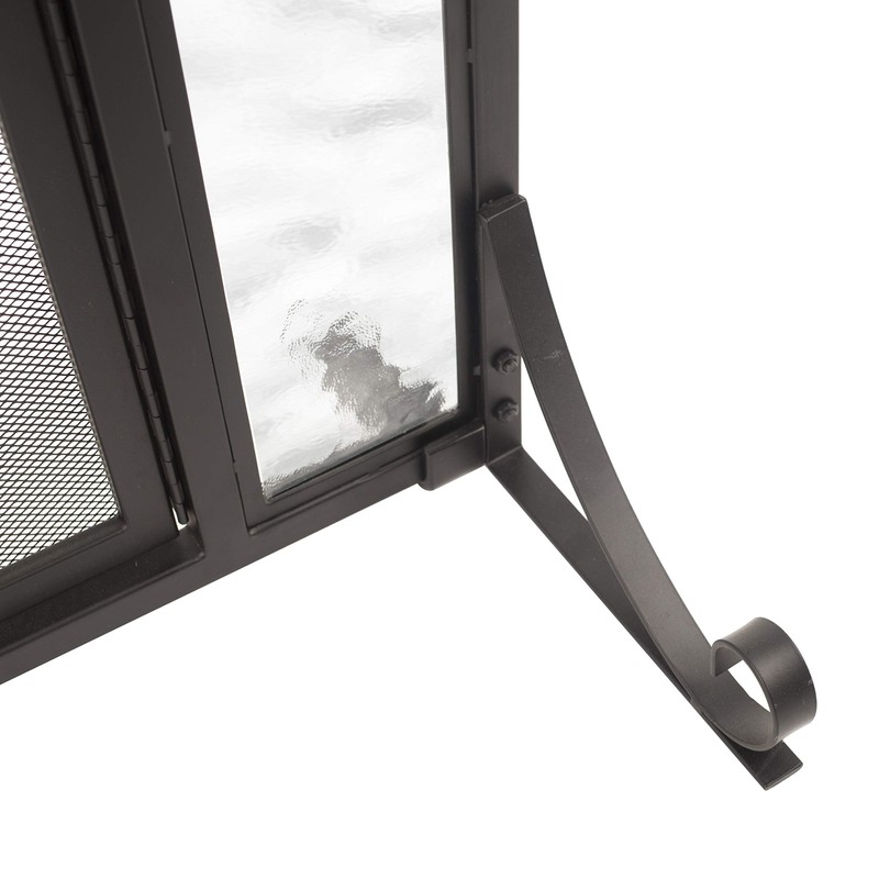 - ''' Single panel design#||# Two doors for easy access to the fire#||# Fits most smaller fireplace openings#||# Sits flush against fireplace with adjustable back feet#||# Classic design#||# Patterned glass design borders the screen#||# Easy to assemble'''