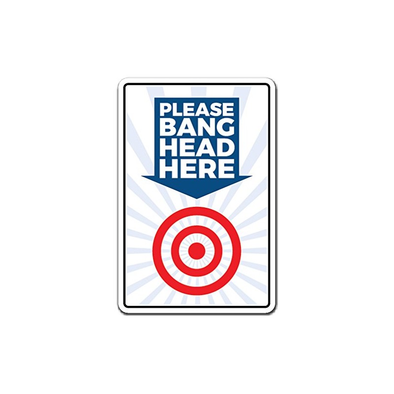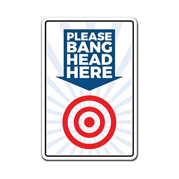 Please Bang Head HERE Aluminum Sign Stress Reduction Reliever | Indoor/Outdoor | 14" Tall