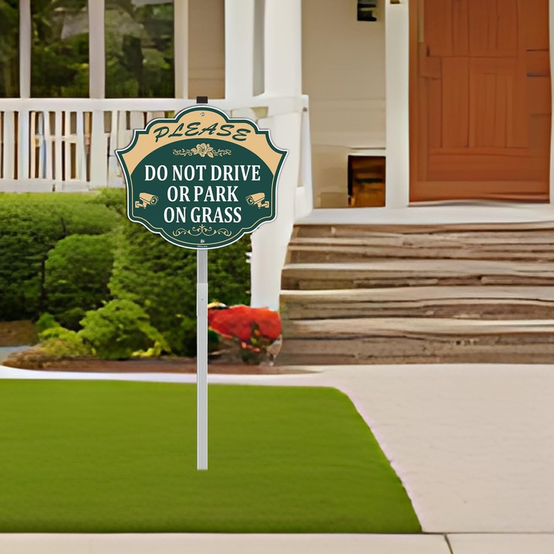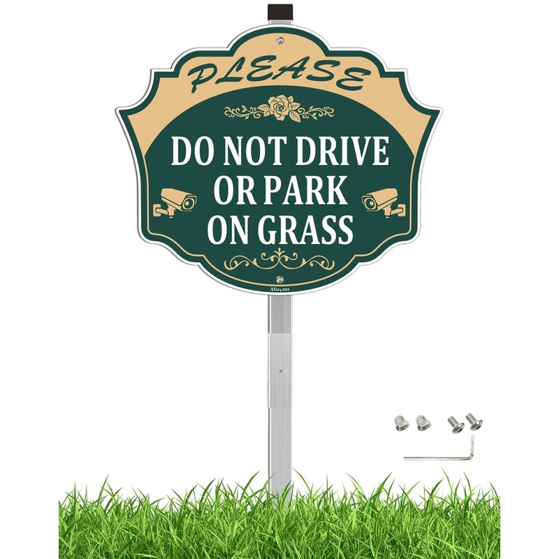 - Please Do Not Drive Or Park On Grass Sign, Clearly visible green and gold design is sure to catch the attention of possible. Let people know that vehicles cannot be driven or parked on grass. With this sign, you don't have to refuse these bad behaviors in person. This is a gentle way of refusing.