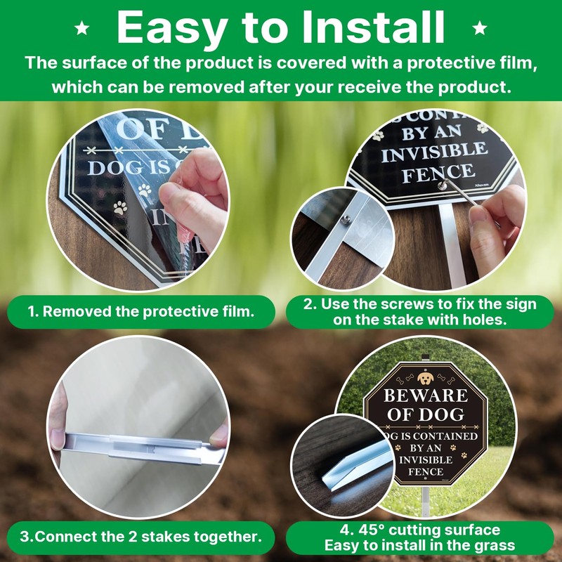 - Easy to Mount sign for home comes with 2 pieces stakes and screws. Use the screws to fix the sign on the stake with holes and then connect the 2 stakes together, that's OK! Perfect for driveways, yards, sidewalks, roads, and other areas. The sign can Safe handled with rounded corners and burr-free corners.