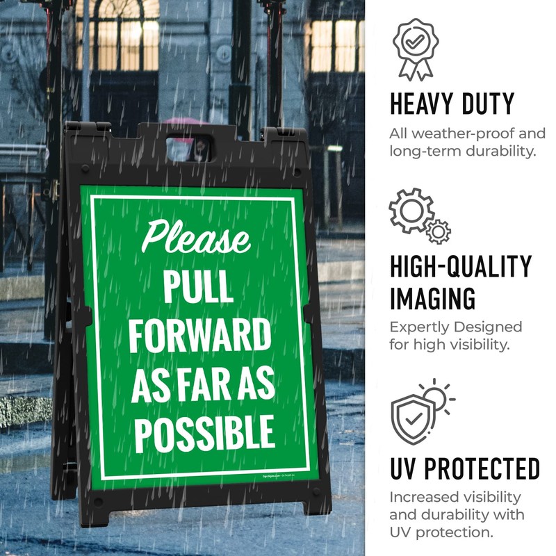 Please Pull Forward As Far As Possible Sidewalk Sign Kit, 18x24 Inches, With A Frame Stand, Made in USA