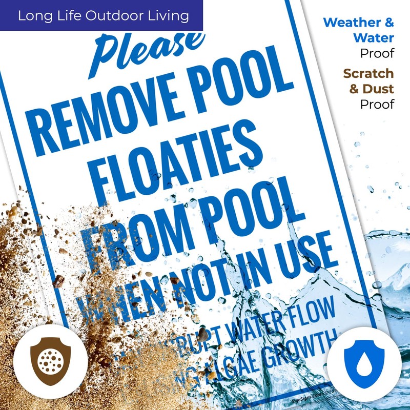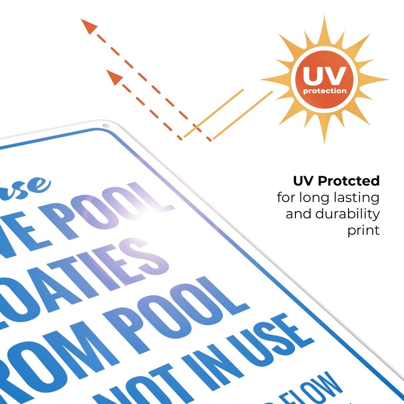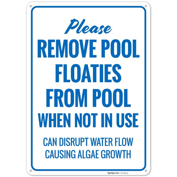 Please Remove Pool Floaties from Pool When Not in Use Sign, 10x14 Inches, Rust Free .040 Aluminum, Fade Resistant, Made in USA