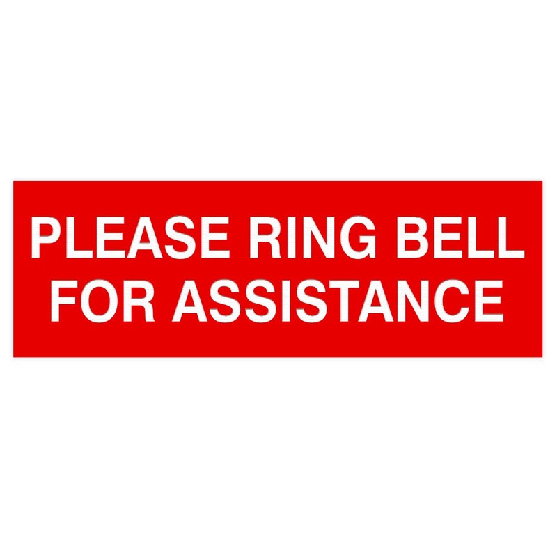 This informative 'PLEASE RING BELL FOR ASSISTANCE' Sign can be attached to the door, wall or window of your home or business. The sign has been laser engraved so the words are all etched into the plastic. Comes in multiple colors.