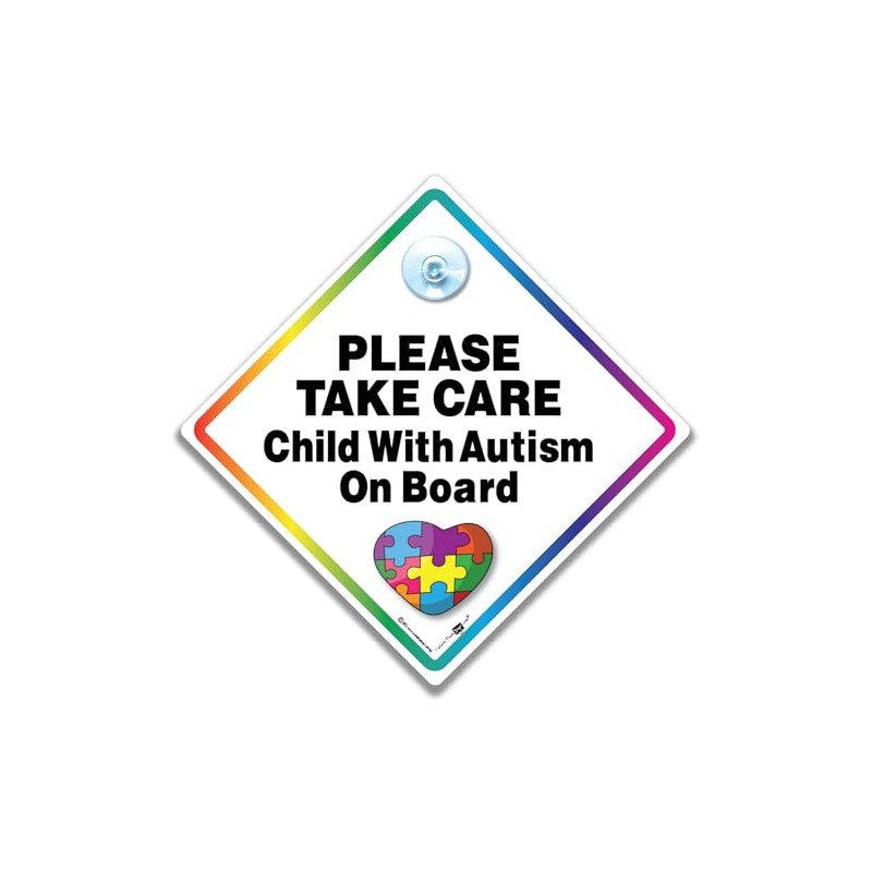Please Take Car Child With Autism On Board Car Sign, Autistic Child Car Sign, Autism Car Sign, Autistic Child In Car Sign, Autistic Person Car Sign 14 x 14cm